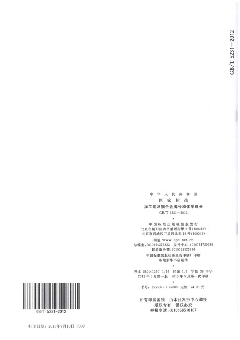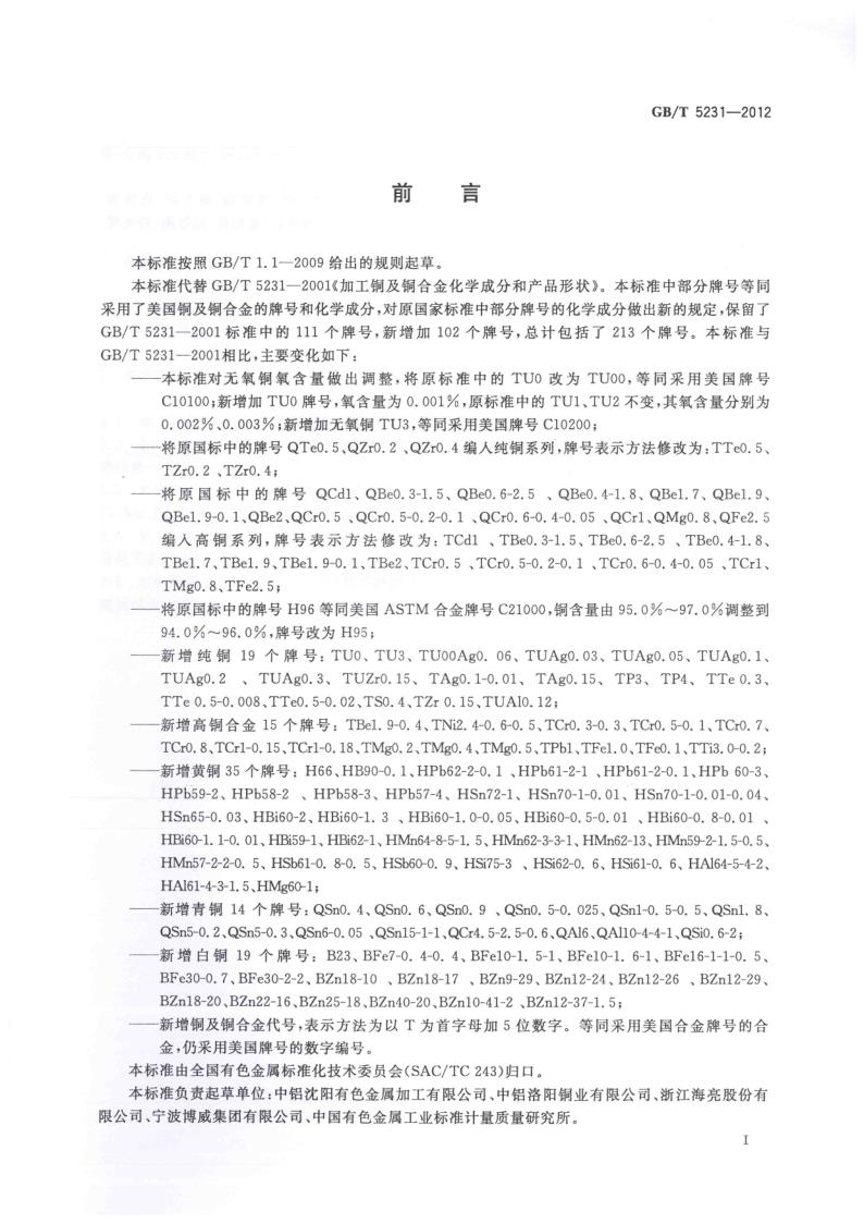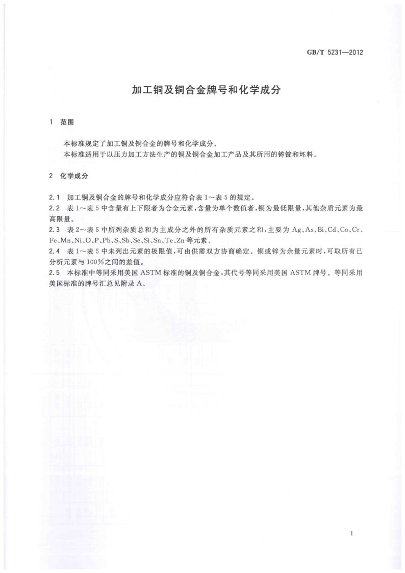 GBT 5231-2012 加工(gōng)銅及銅合金牌号和化學(xué)成分(fēn)