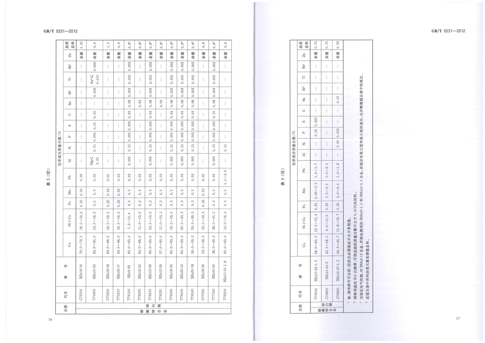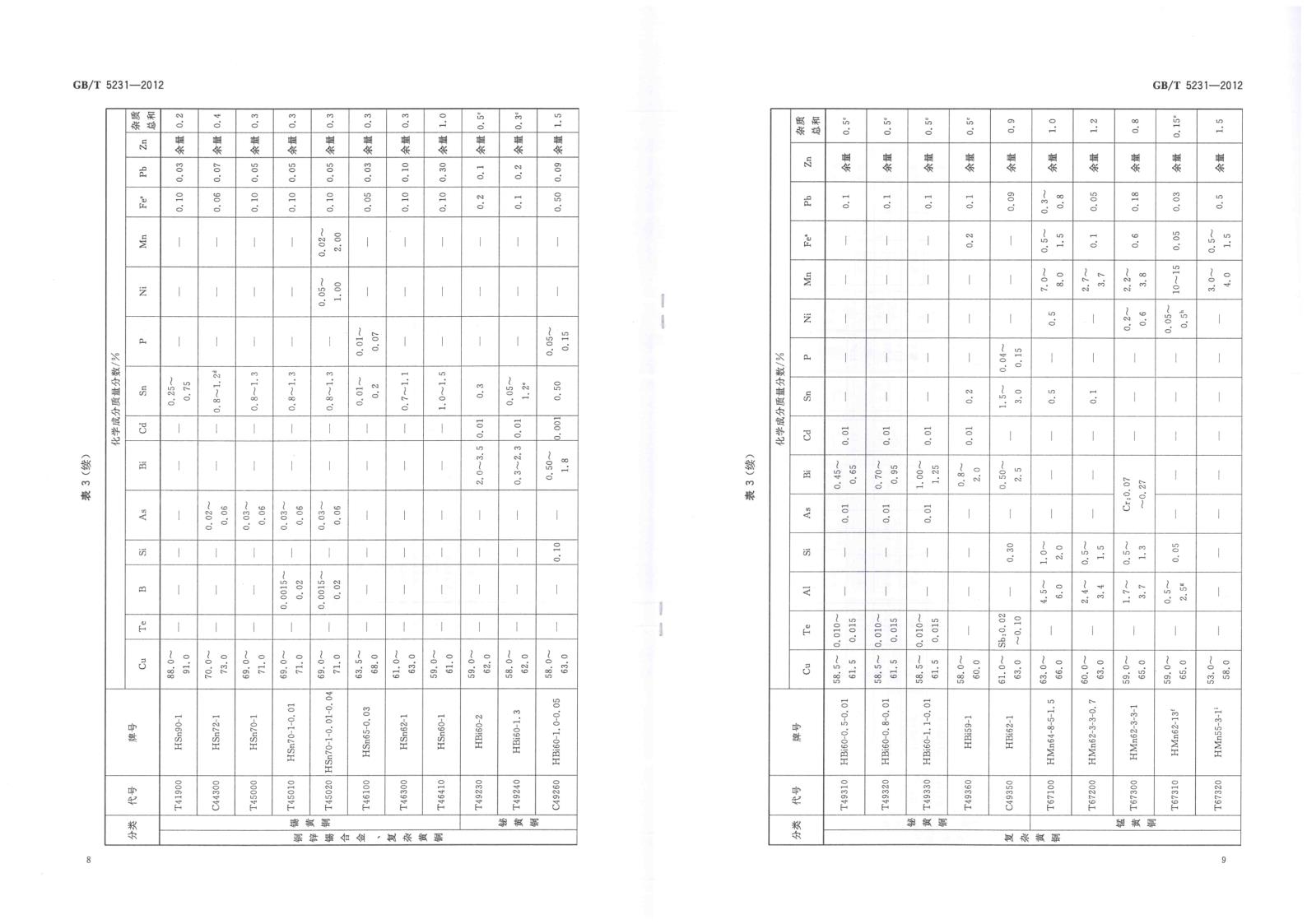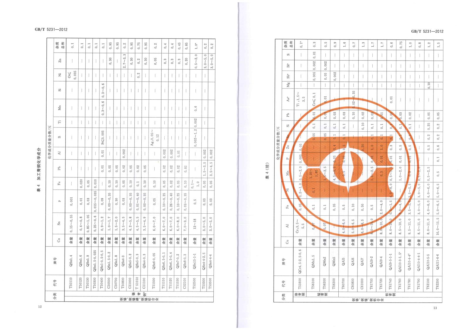 GBT 5231-2012 加工(gōng)銅及銅合金牌号和化學(xué)成分(fēn)